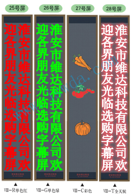 v型系列:高1.74米(192點),寬0.20米(16點),單行顯示,常用字數(shù)不超過14個字. |